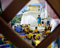 Il percorso di sperimentazione, durato più di un anno all’interno dei Nidi d’Infanzia è stato improntato sulla magia e al tempo stesso sulla uotidianità dei 4 elementi e ci ha permesso di raccogliere le suggestioni e le reazioni dei piccolissimi di fronte alla meraviglia della natura. Un percorso ricchissimo che intendiamo e speriamo di restituire in forma artistica ai piccoli spettatori.