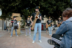Collettivo di soli strumenti a fiato e percussioni che propone in strada cosi come nei club una miscela di suoni funk e easy, carburante di un viaggio fatto da composizioni originali e